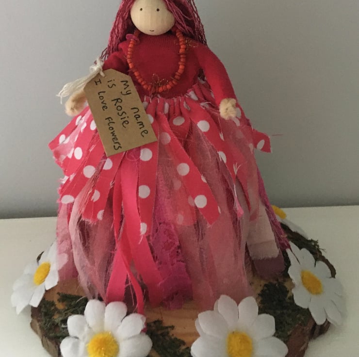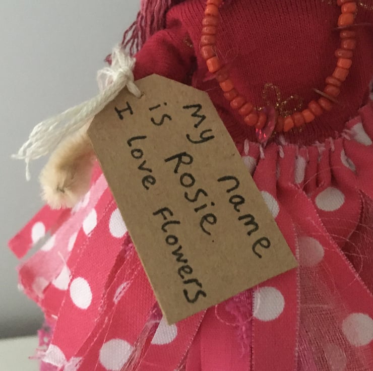 This little fairy person has a tag stating, 'My name is Rosie. I love flowers.'