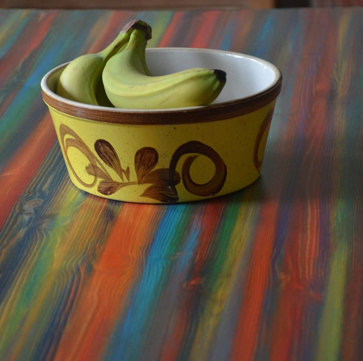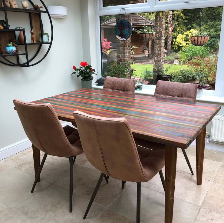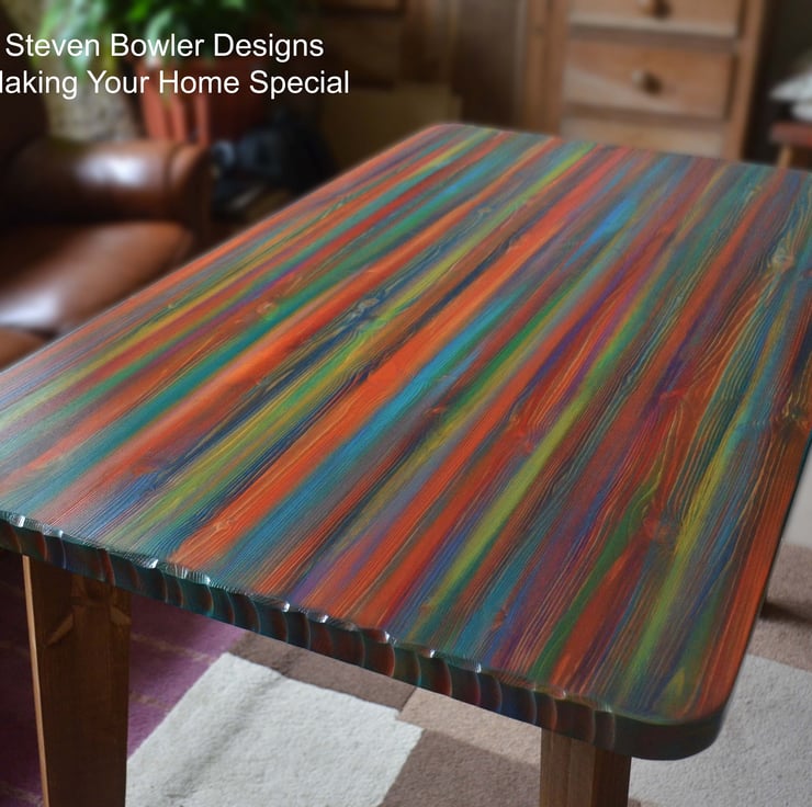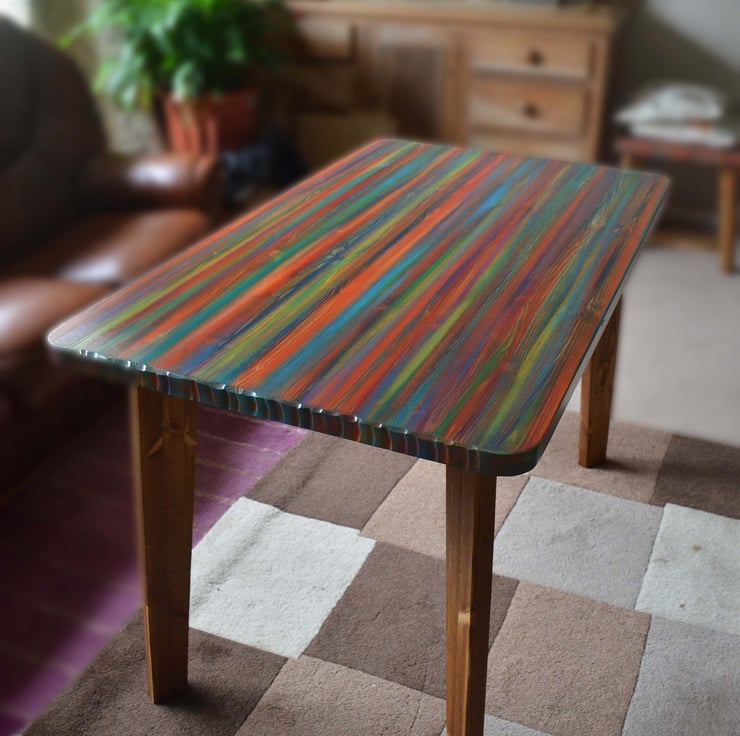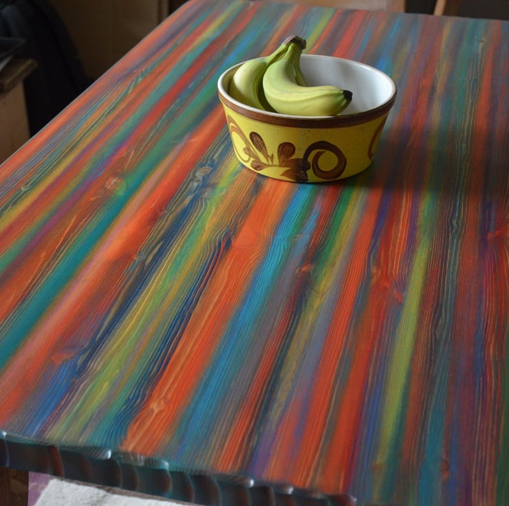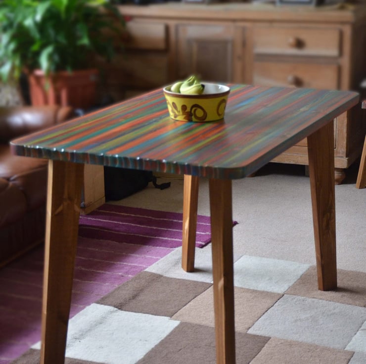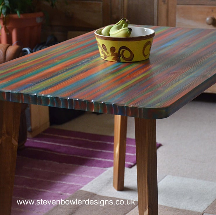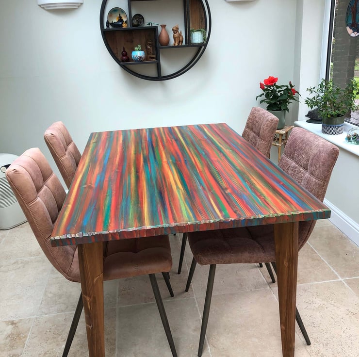 Rectangle Wood Dining Table Hand Painted in our Unique Tropical Sunset Colours