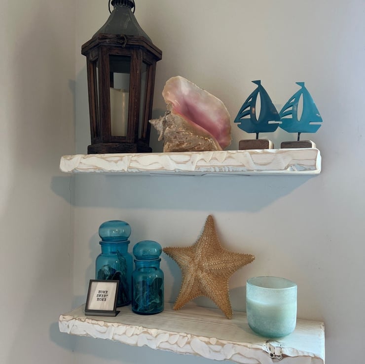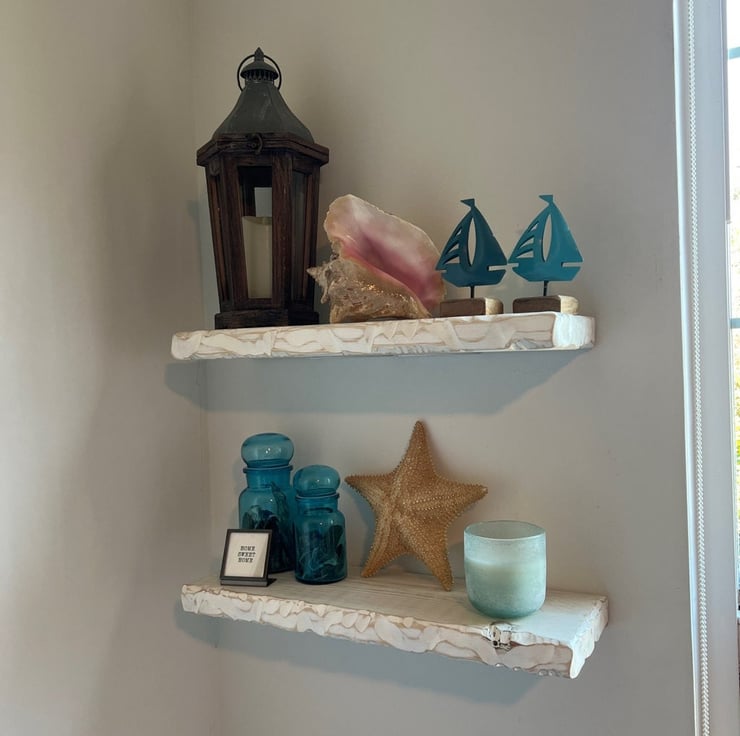 I'm passionate about creating unique coastal cottage furniture. My solid wood floating shelves are individually handcrafted in my Derbyshire studio and not mass produced. Created for the discerning customer looking for something unique and different to enhance their living space. These shelves are designed to create a light, spacious feel to your living space adding lots of extra storage to any room to display your coastal finds and treasured items. Easy to install, strong and robust when in situ. Ideal for all our customers who love the idea of relaxed coastal living. "Transform your space into a coastal paradise with our exquisite collection of coastal furniture. Embrace the soothing vibes of the ocean and bring a touch of elegance to your home. From timeless classics to contemporary designs.