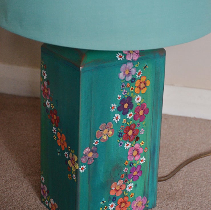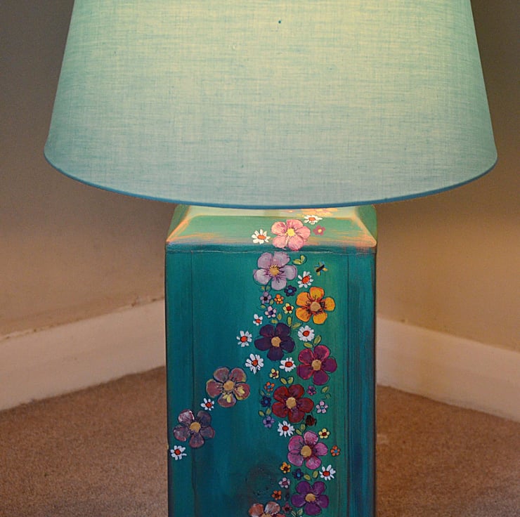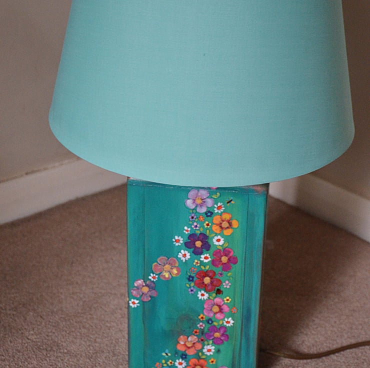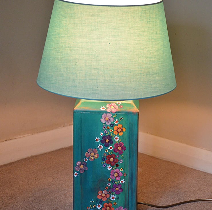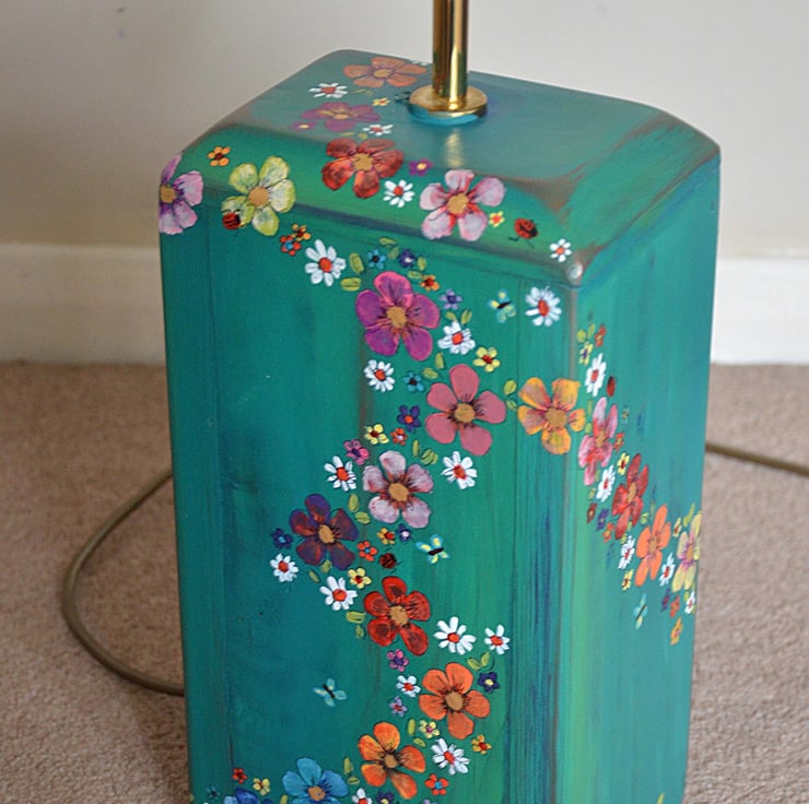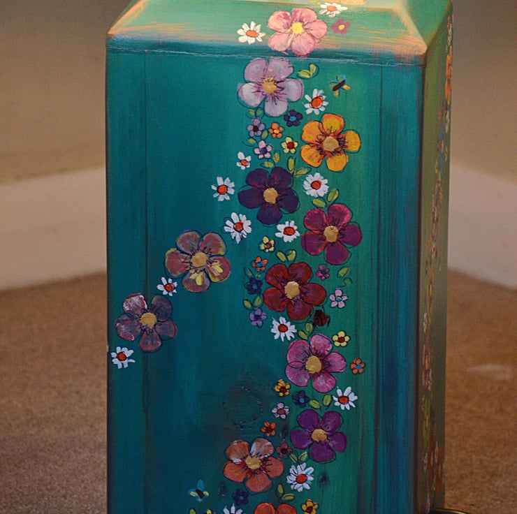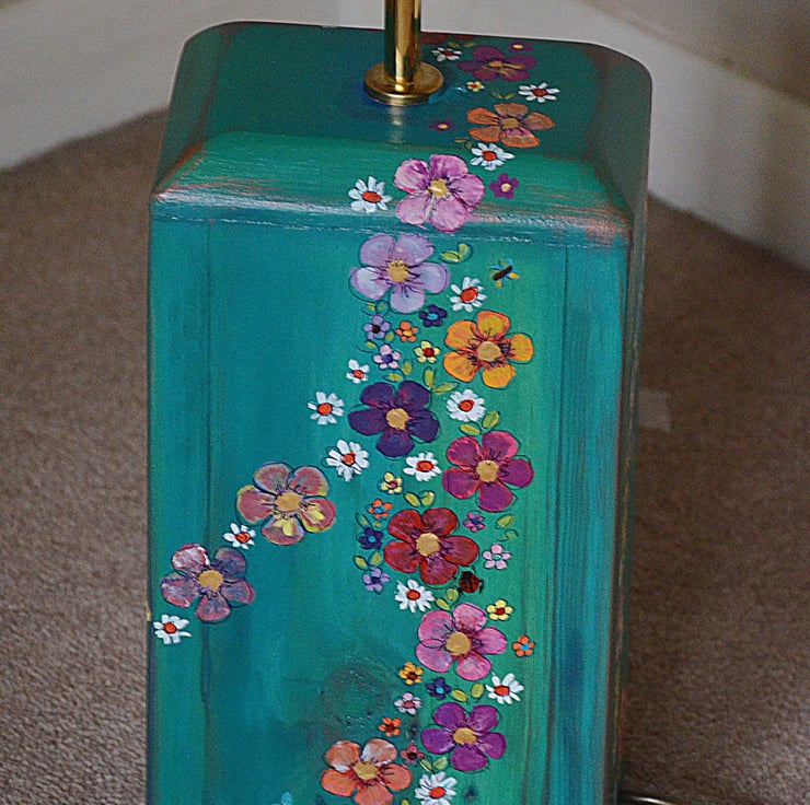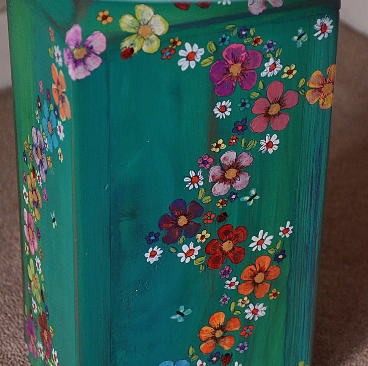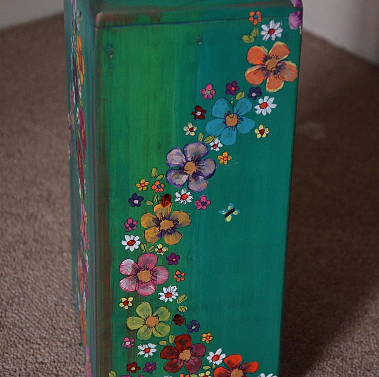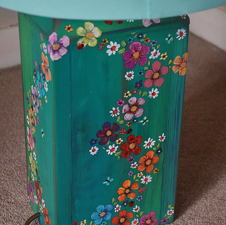 Unique Hand Painted Country Cottage Flowers, Ladybirds and Butterflies growing up the base