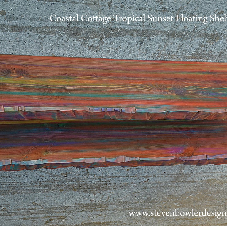 Coastal Cottage 3ft Tropical Sunset Floating Shelf Handcrafted to Order