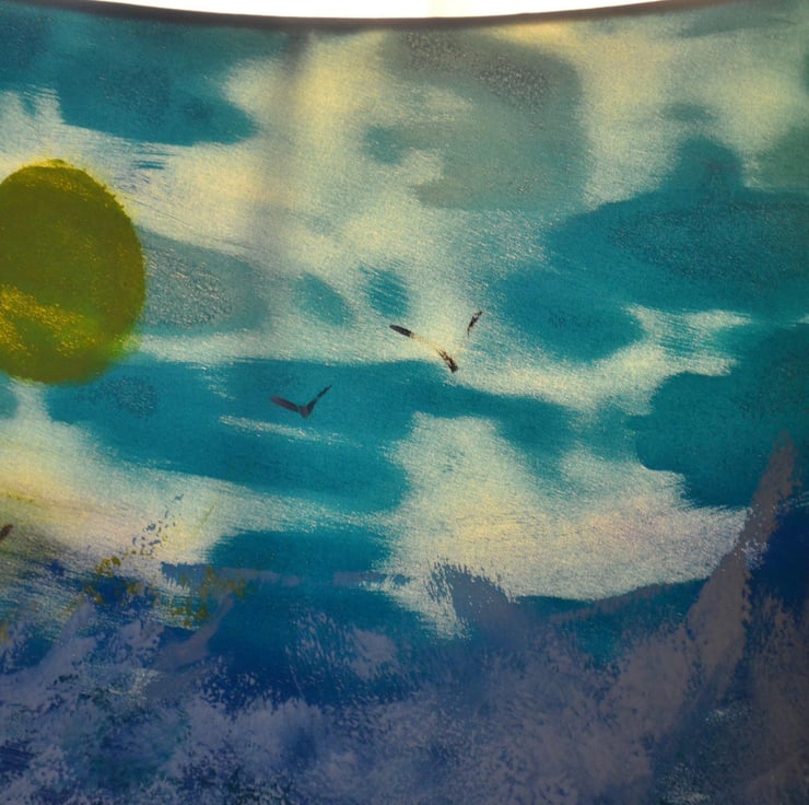 Coastal Cottage Table or Bedside Lampshade with Hand Painted Ocean Waves Clouds