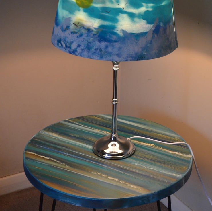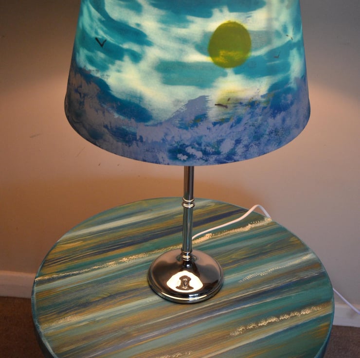 Light up your home with our stunning Coastal Cottage Table or Bedside Lampshade! Individually hand-painted to bring the ocean to your space. Get yours today!