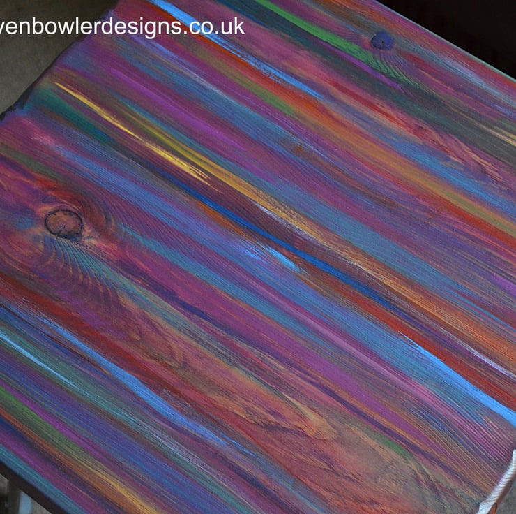 I'm passionate about creating high quality, unique and sustainable rustic and coastal furniture. This beautiful multi coloured solid wood table top is individually hand decorated. Unique to each buyer because all my work is carefully handmade with attention to detail in my Derbyshire studio and not mass produced.