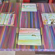In a lovely rainbow wash of Candy Stripe Pinks, Cerise, Purples, Turquoise Blues & Greens