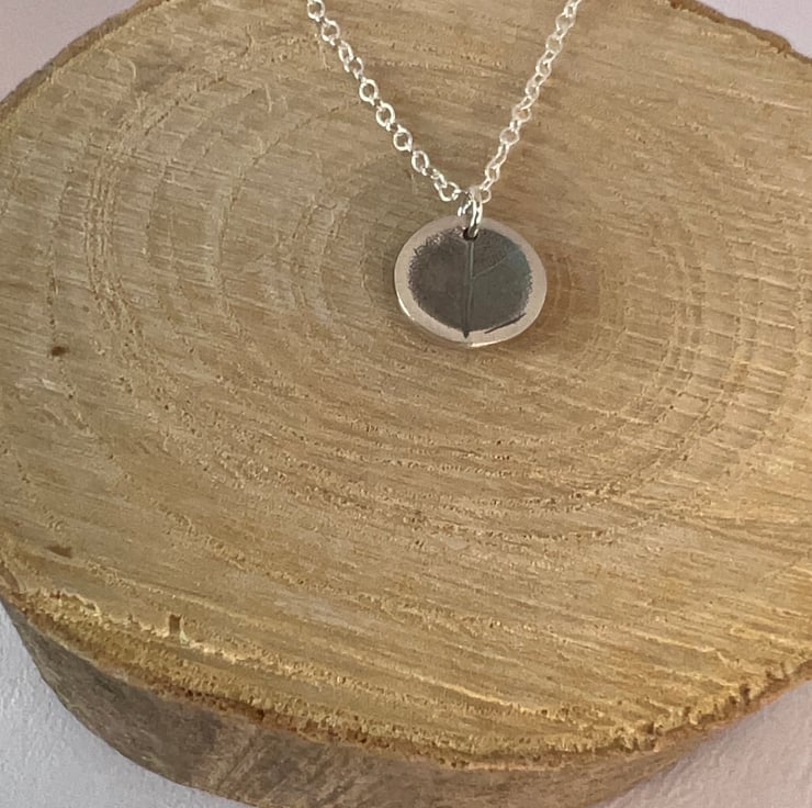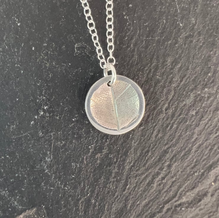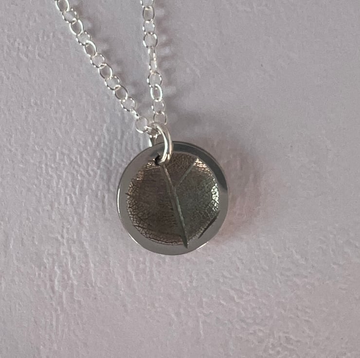 Concave circular leaf imprint pendant necklace