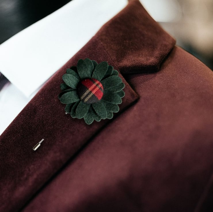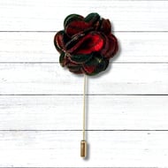 Flower Lapel Pin, Tartan, Christmas Lapel Pin