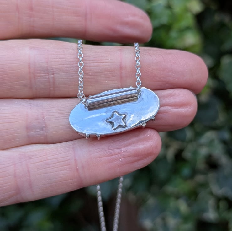 A small silver star is added to the reverse of the pendant for an extra touch of charm. The stone is set horizontally and held in place with little silver claws. The chain passes through a tube on the back of the pendant and you can choose the chain length from the menu,