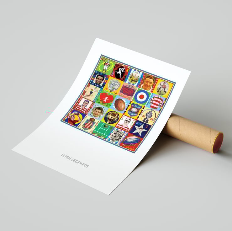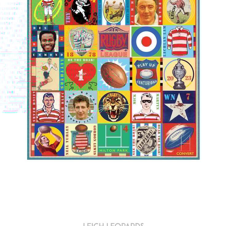 Celebrate the proud history of Leigh Rugby with this unique Pop Art Print, featuring vintage images & memorabilia capturing and celebrating the rich heritage, history and Club legends. This print is the perfect tribute for any true Leigh supporter.