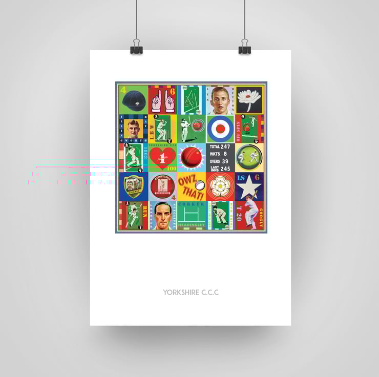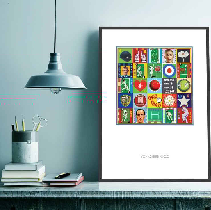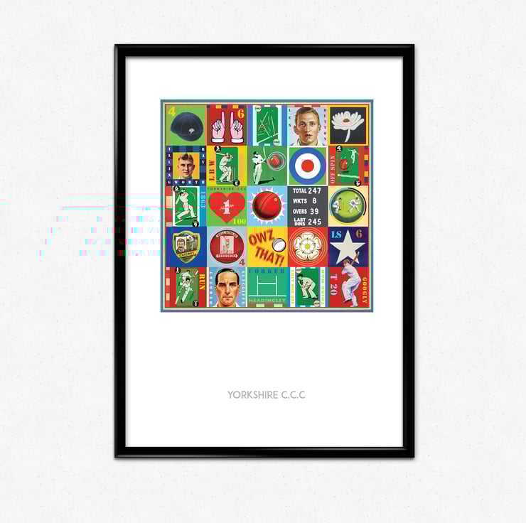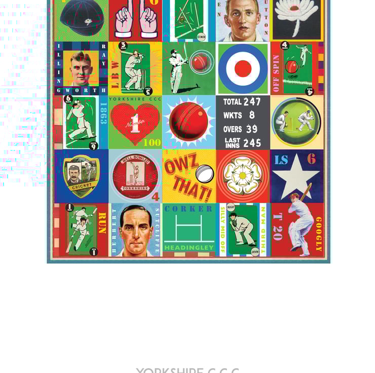 Celebrate the proud history of Yorkshire Cricket Team with this unique Pop Art Print, featuring vintage images & memorabilia capturing and celebrating the rich heritage, history and Club legends. This print is the perfect tribute for any true Yorkshire CCC supporter.