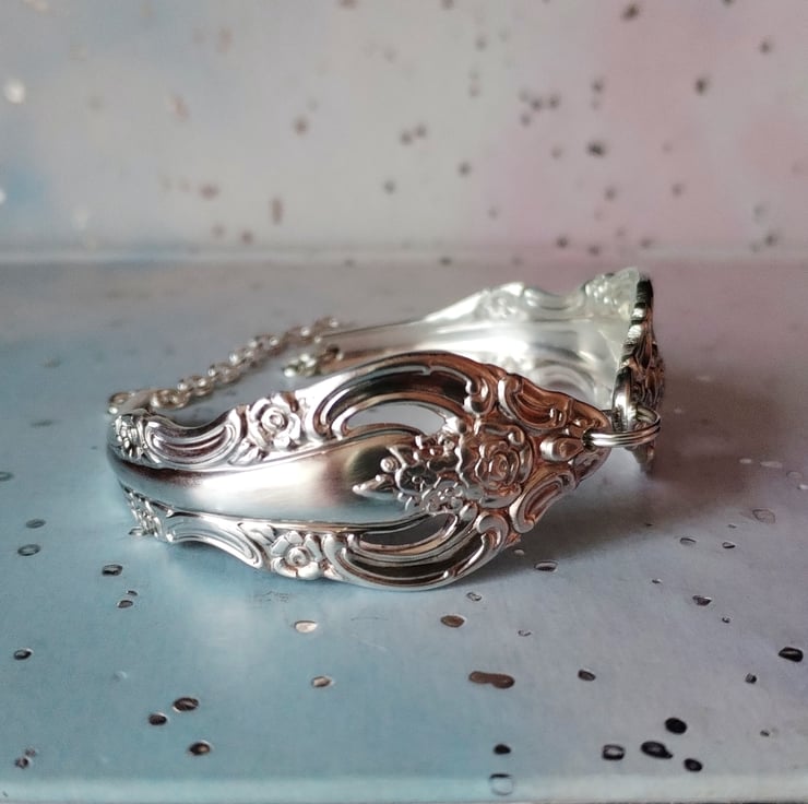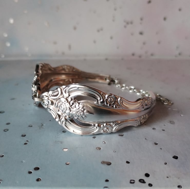 Lovely pattern on this handmade spoon handle bracelet, upcycled from lonely vintage spoons and forks and given a new lease of life.