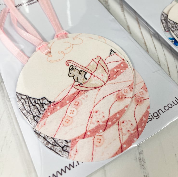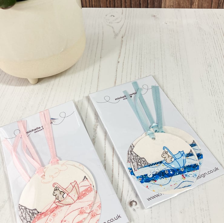 Bunny at Sea is an original textile piece of art created by Michelle and has been printed onto 230 gsm Archival Matt paper. Hole punched with a ribbon attached.