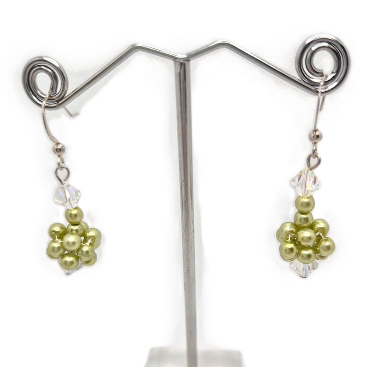 Swarovski pearls have been arranged in the shape of a bunch of grapes and have a Swarovski crystal at the too and the bottob
