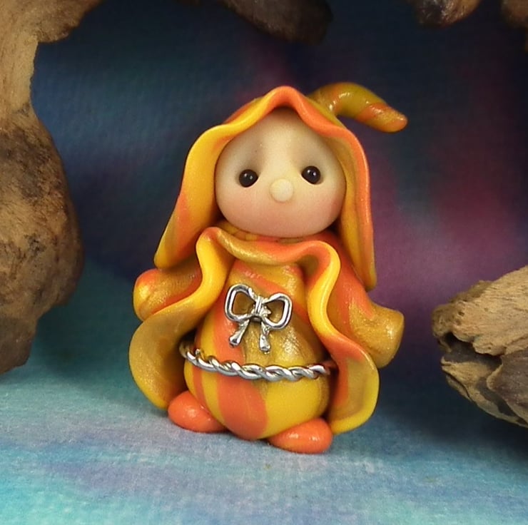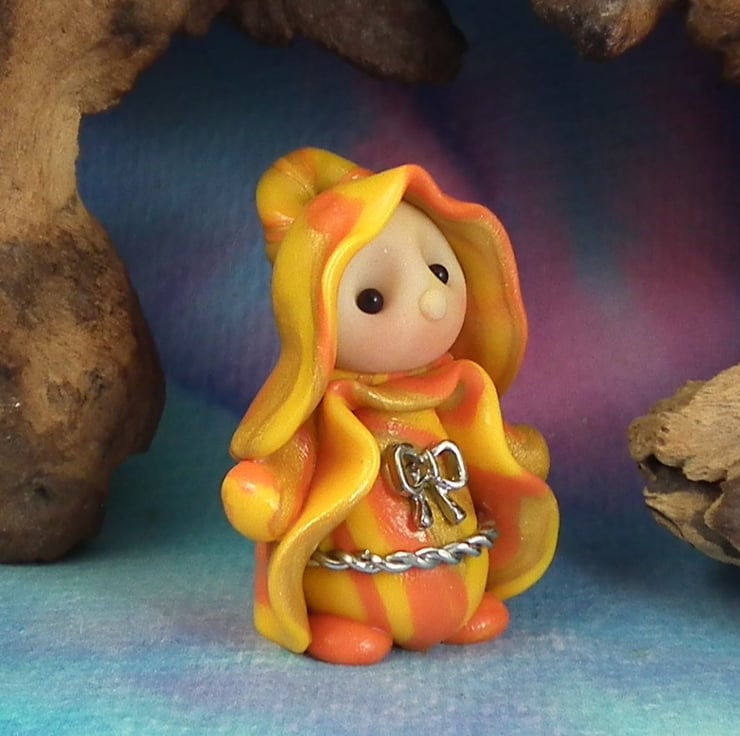 This is a 'one of a kind' creation having been entirely handmade without the use of moulds here at my studio on the Sussex Coast. Modelled with artist blend polymers, blushed before sealing with lacquer, Joni has sparkling black onyx eyes and vivid robes. Joni the Magical Gnome is just one and a half inches tall.
