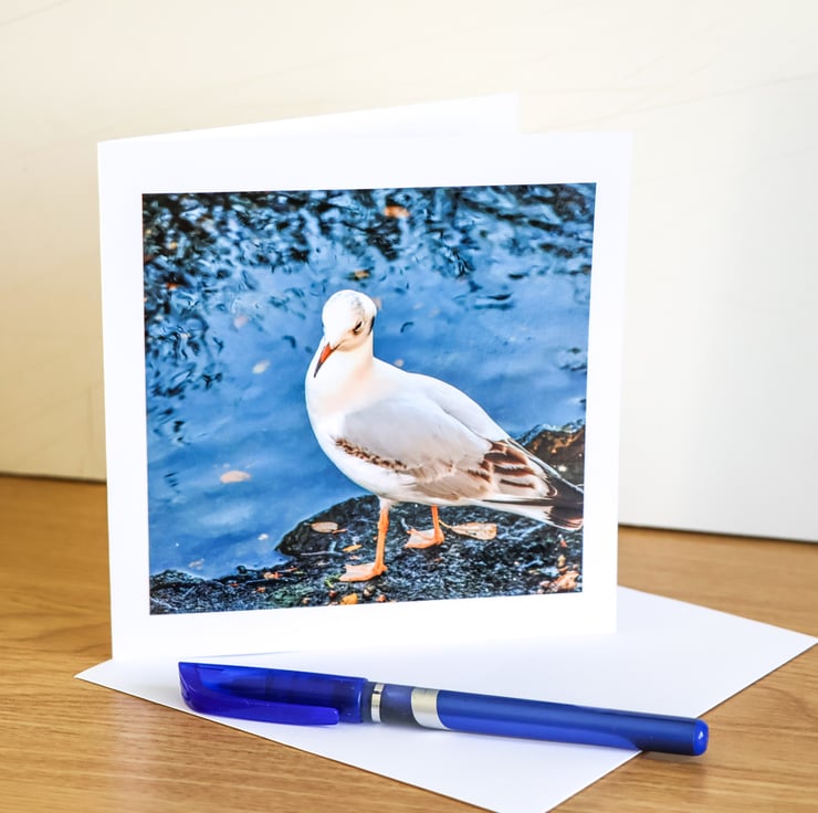 Countryside Collection series. A first winter Black Headed Gull beside one of the lakes at Pensthorpe Natural Park. This is a 6 x 6 inch Greetings Card, Professionally printed and mounted on 300 gms Card, and includes an envelope. This has been left blank for you to include your own personal message.