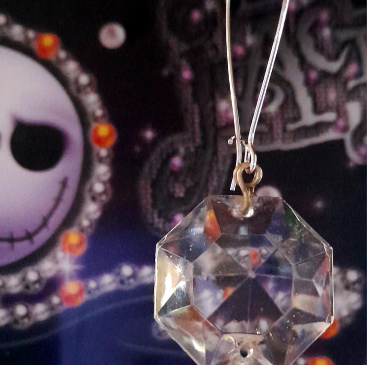 One large 32mm octagonal crystal with silver fish hook. The fish hook (think this is what it is called) opens and closes like an earring, and they look very nice together.