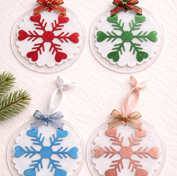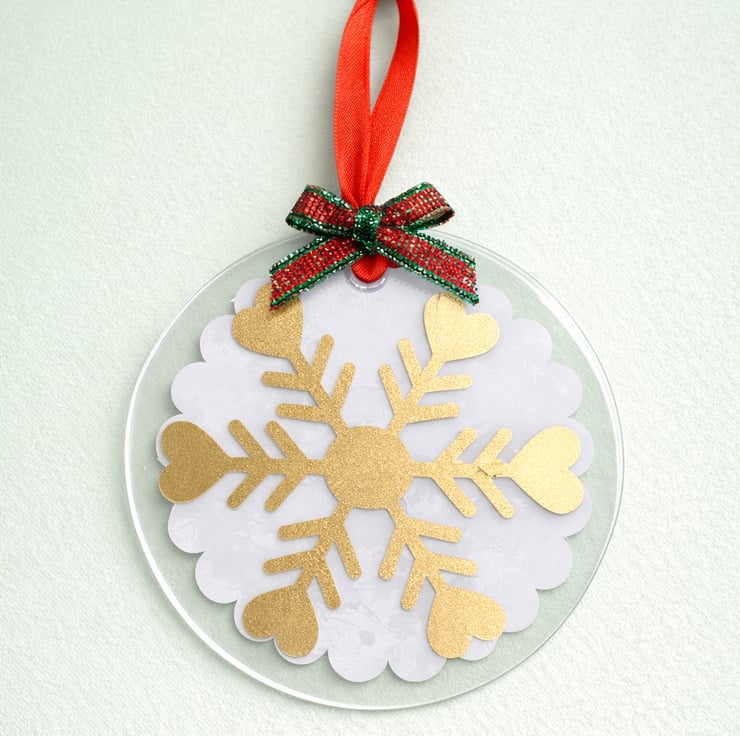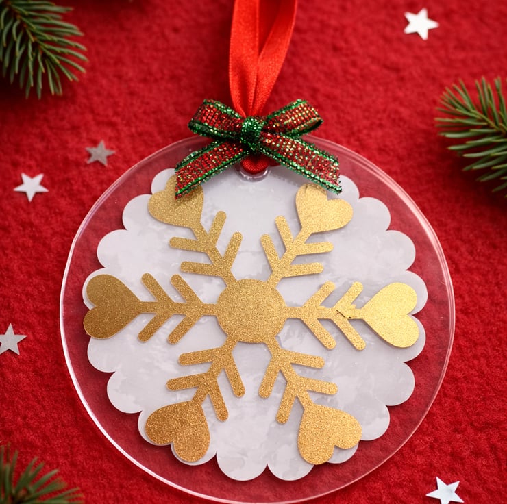 Handmade acrylic Christmas ornaments in your choice of white frosted snowflake.