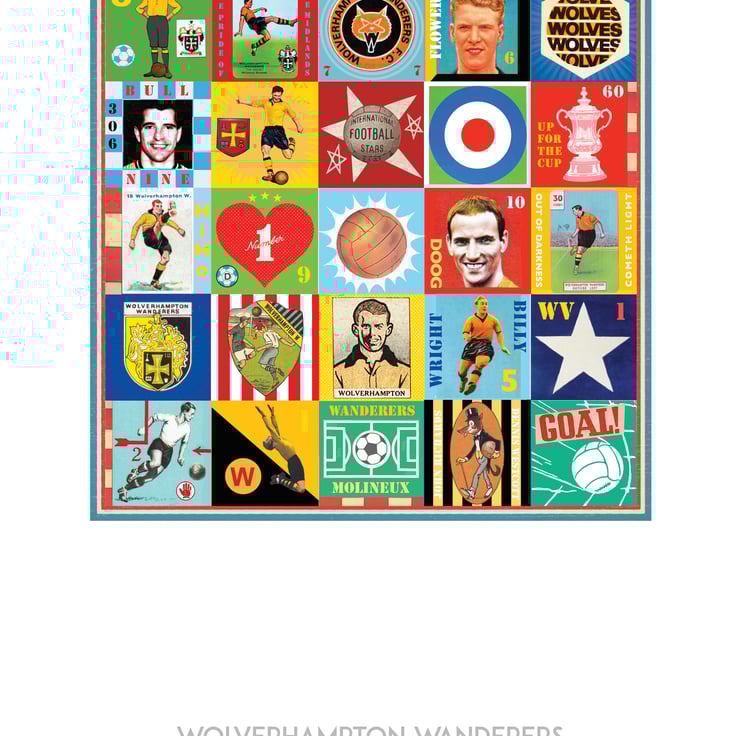Celebrate the proud history of Wolves with this unique Pop Art Print, featuring vintage images & memorabilia capturing and celebrating the rich heritage, history and Club legends. This print is the perfect tribute for any true Wolves supporter.