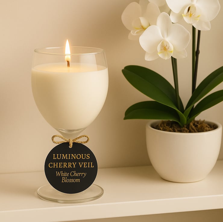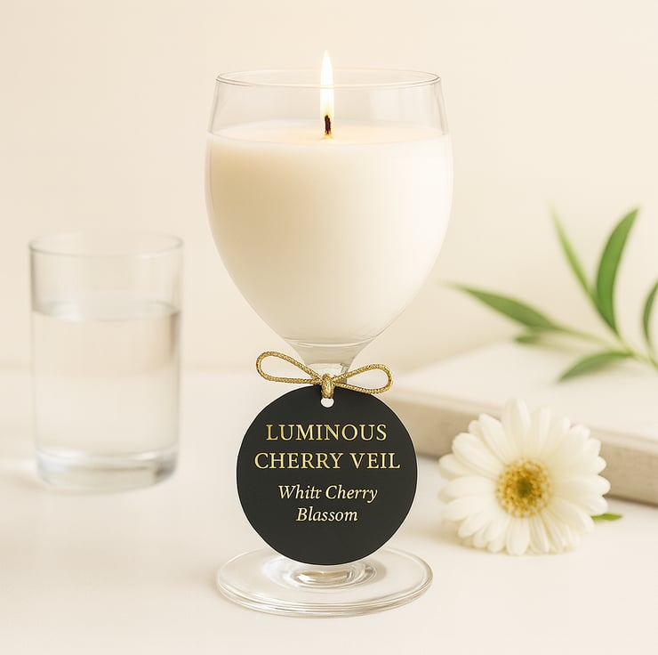 Cherry Veil – White Cherry Blossom Candle in Wine Goblet