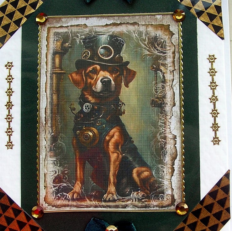 Steampunk Dog - Hand Crafted Decoupage Greeting Card - Blank (2923)