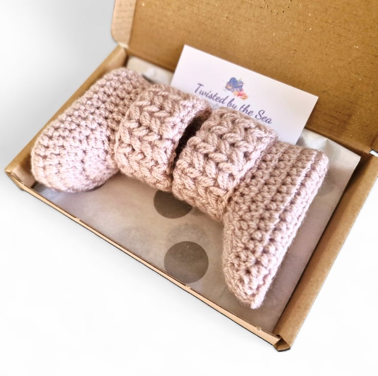 Welcome to Twisted by the Sea – home of beautifully handmade crochet baby gifts including baby booties, hats and cardigans. Each item is thoughtfully crafted using soft Stylecraft Special DK yarn, perfect for new arrivals, baby showers, and keepsake gifts. All made from my coastal home in Lincolnshire.