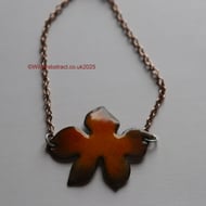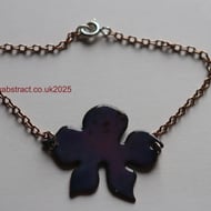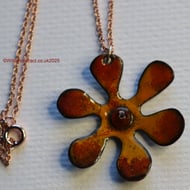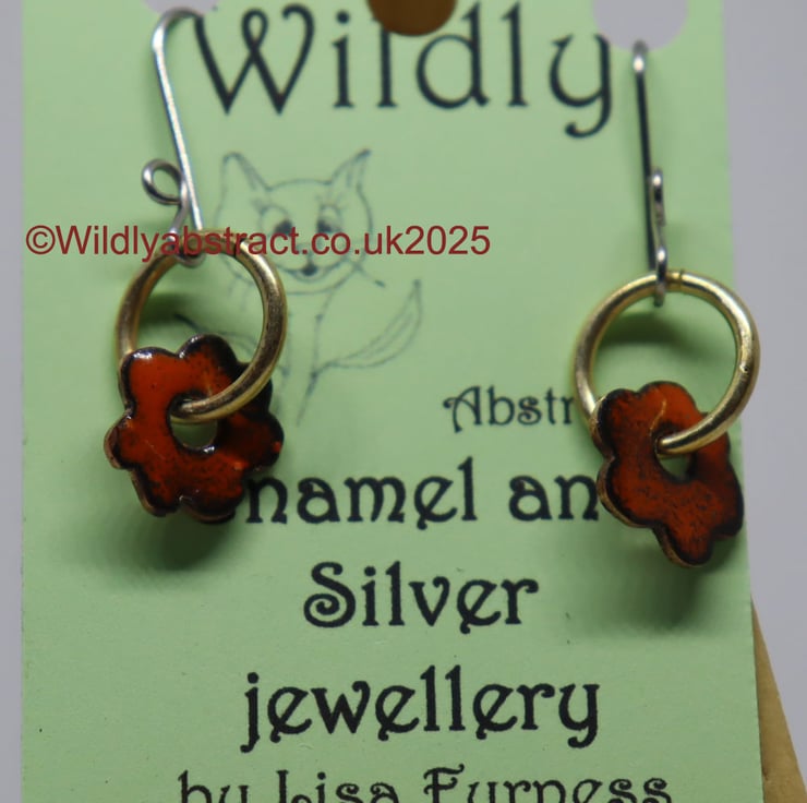These earrings were handcrafted using little flower shapes sawn from copper sheet. The flowers have pierced centres and are hung with gold plated hoops through the centre. They are suspended from stainless steel ear wires and measure 1.5 x 1cm with a drop length of 3.5cms.