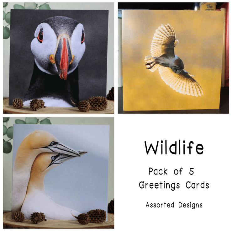 Pack of 5 blank greetings cards featuring original photography of UK wildlife.