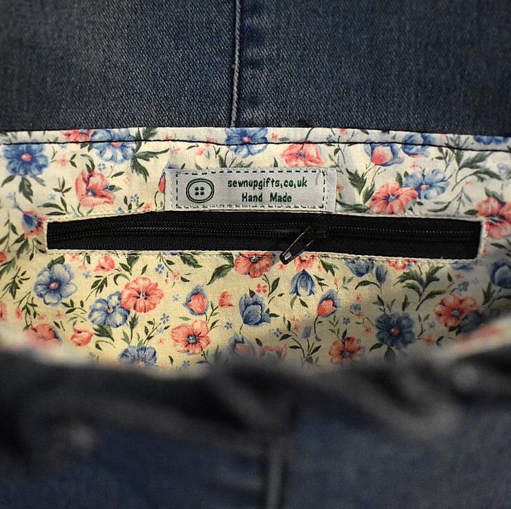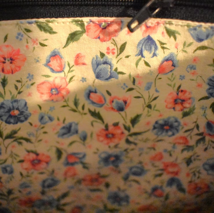 2. Lined with interfacing and fusible wadding, featuring a flower print cotton.
