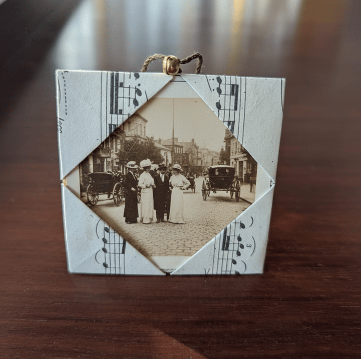 Little Photo Frame Ornament - Handcrafted with Vintage Sheet Music Origami