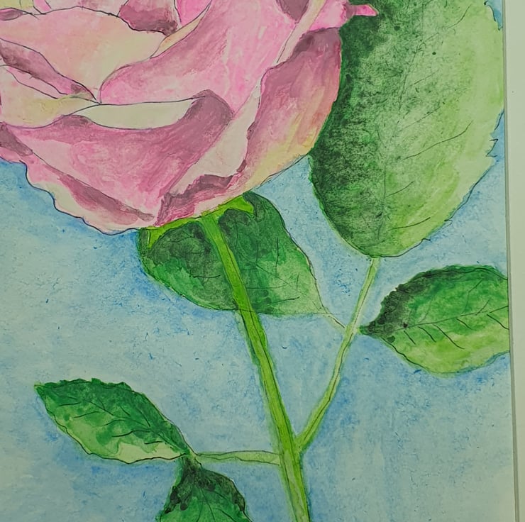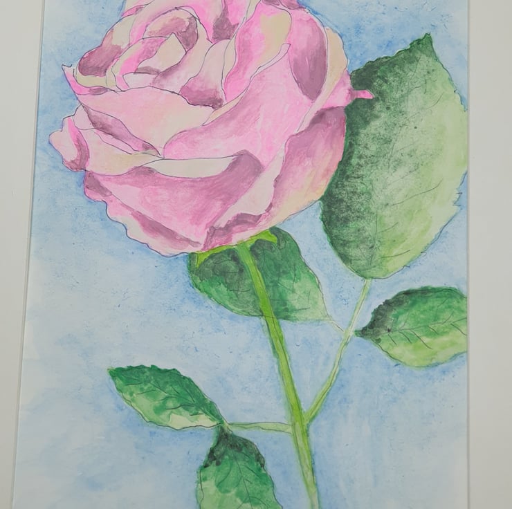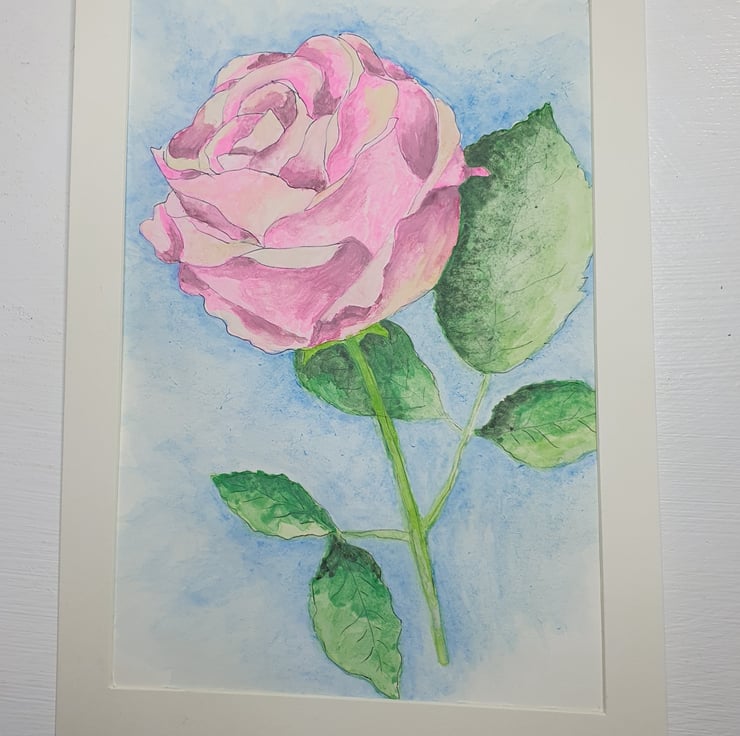 An original sketch of a rose . Hand drawn and hand painted. Copied from a photo of a rose.