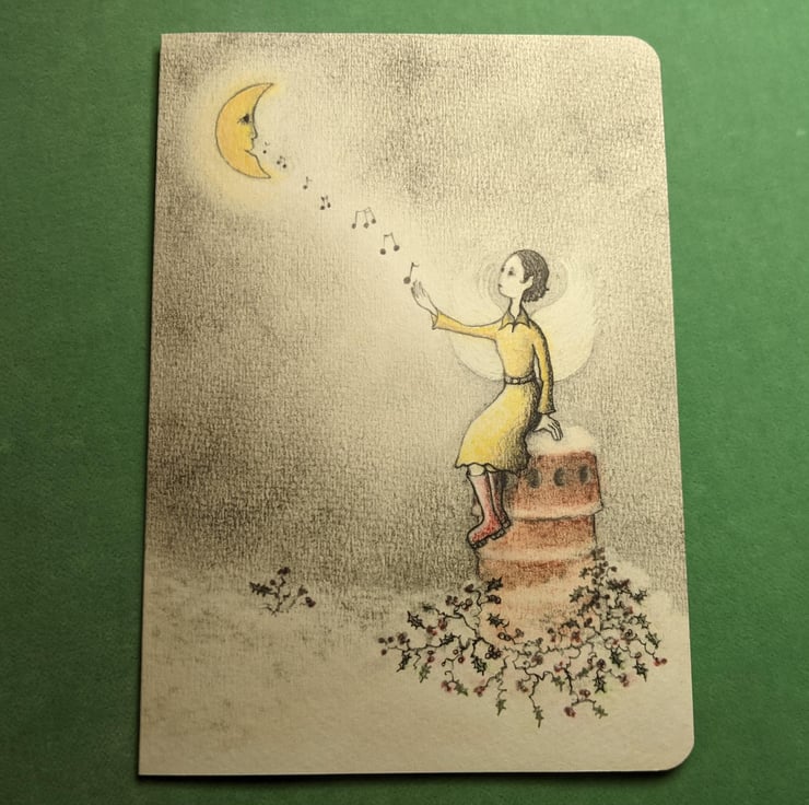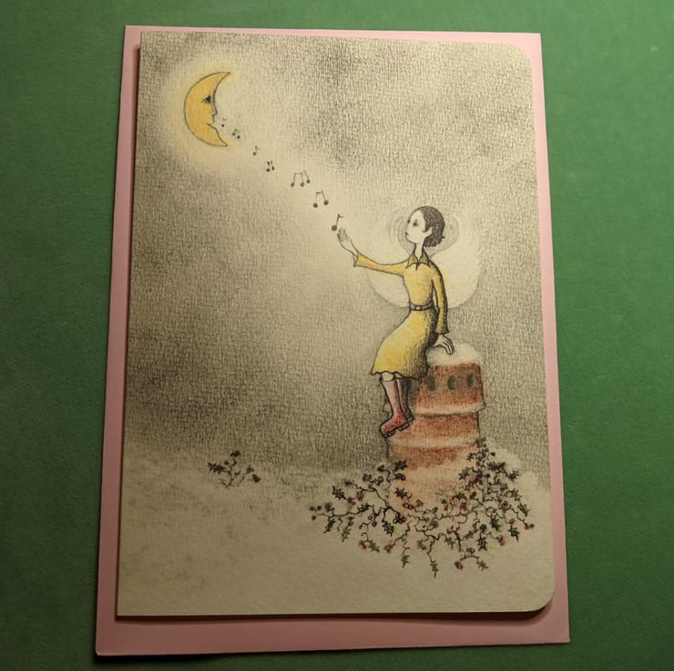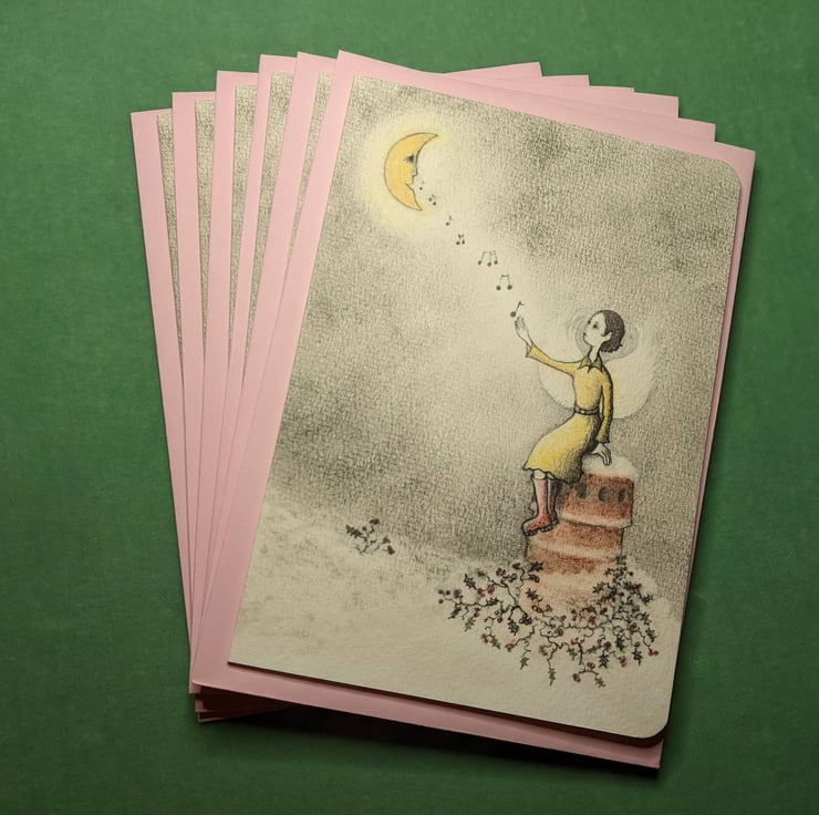 Limited edition Moonsong Winter Cards by Anne Garner. These A6 illustrations have been professionally printed to textured 250gsm gesso paper with rounded edges, and are supplied with baby pink envelopes - ready to serenade your loved ones near and far this Yuletide.