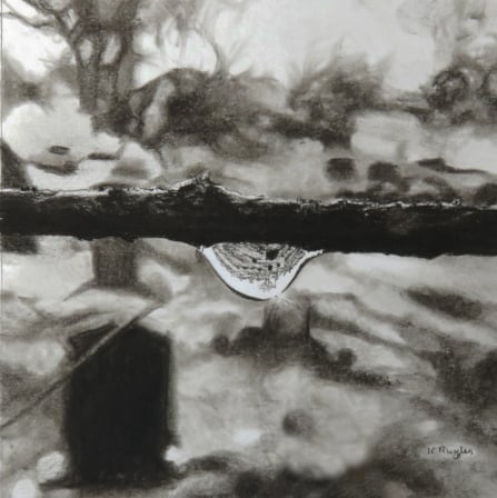 Created as part of Reflections 2 'Light in the Darkness', a project studying landscapes reflected in droplets of water. 25 drawings were created and exhibited at Newcastle City Library before being sent out to collectors worldwide.