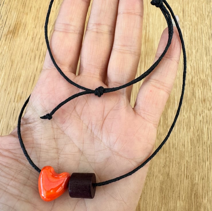 Handmade Orange Ceramic Heart Necklace – Adjustable Cord, Minimalist Pendant