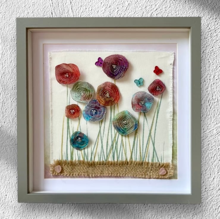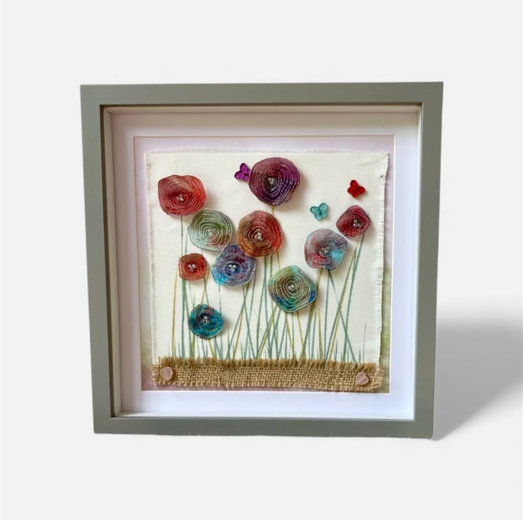 - Three colourful button butterflies adding a playful touch