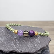 waxed Brazilian cord - Angelite round beads - faceted glass beads - sliding knot closure