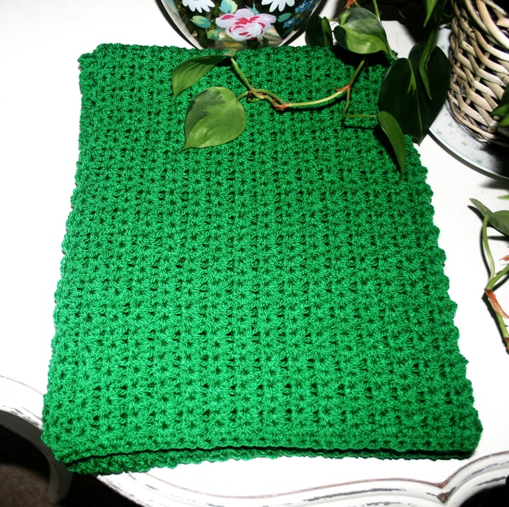 A beautiful and vibrant Emerald shade of green scarf. It is 100 % premium acrylic and is very soft to the touch. I only work with very good quality wool and the shade of green is very pretty and will keep you warm and snuggly through autumn and winter. The scarf measures approximately 57 and a half inches (L) and 10 inches (W).