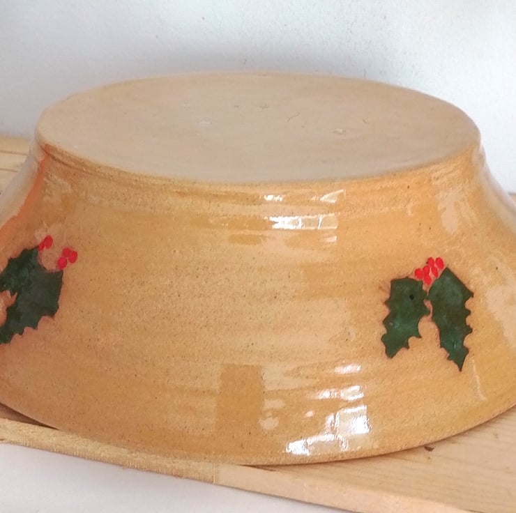 As I do make all sorts of one off quirky chip and dip bowls, I had made one like this previously with the handpainted holly motifs, I also made it extra large for parties and gatherings.