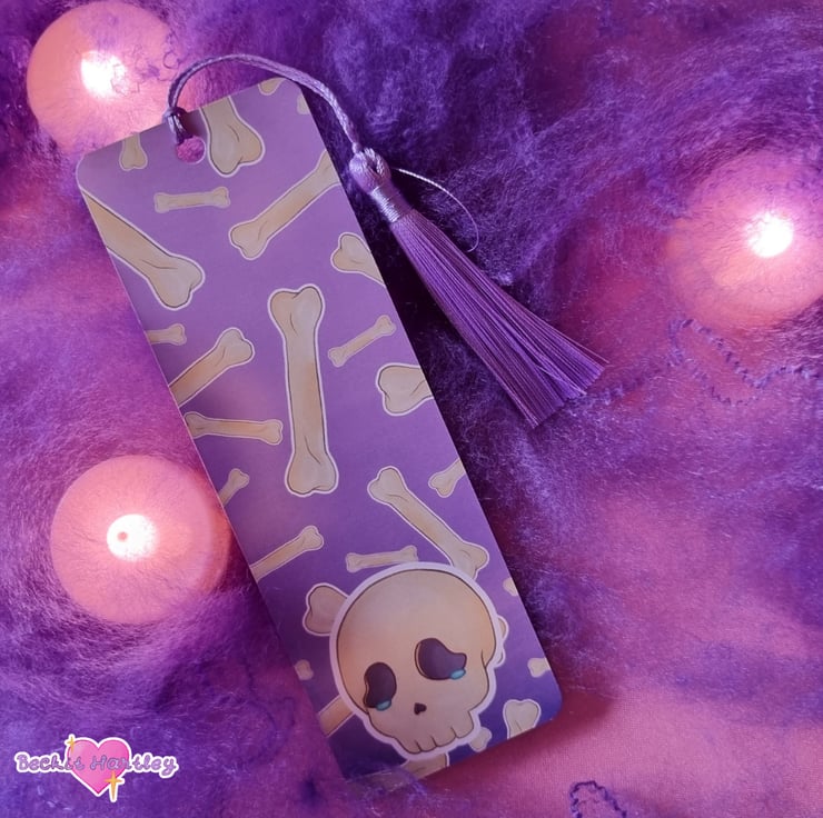 Featuring original crying skull and bone illustrations, a colour co-ordinating tassel, a high quality matte finish and approximately 15.3cm x 5.1cm in size, this bookmark is a perfect placeholder.