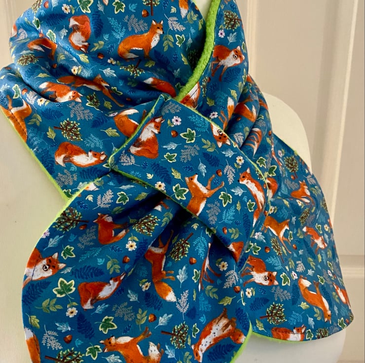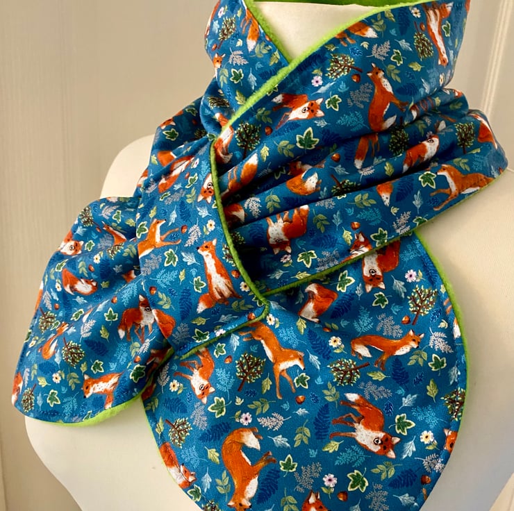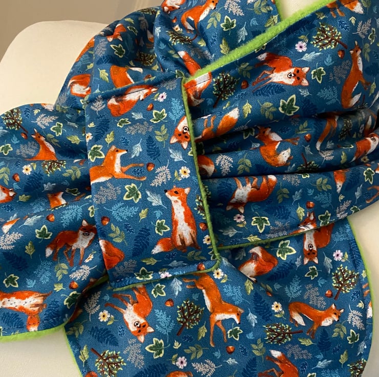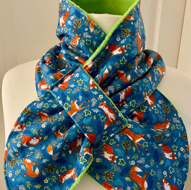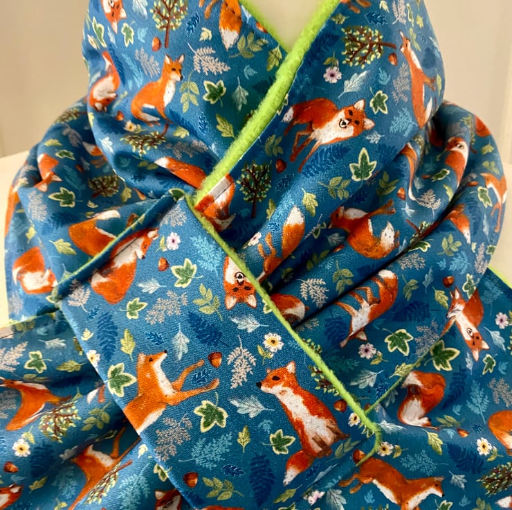 I’ve created this lovely fleece lined neck warmer scarf using a gorgeous 100% cotton print fabric and lined it with a soft warm fleece which compliments the colour of the outer.