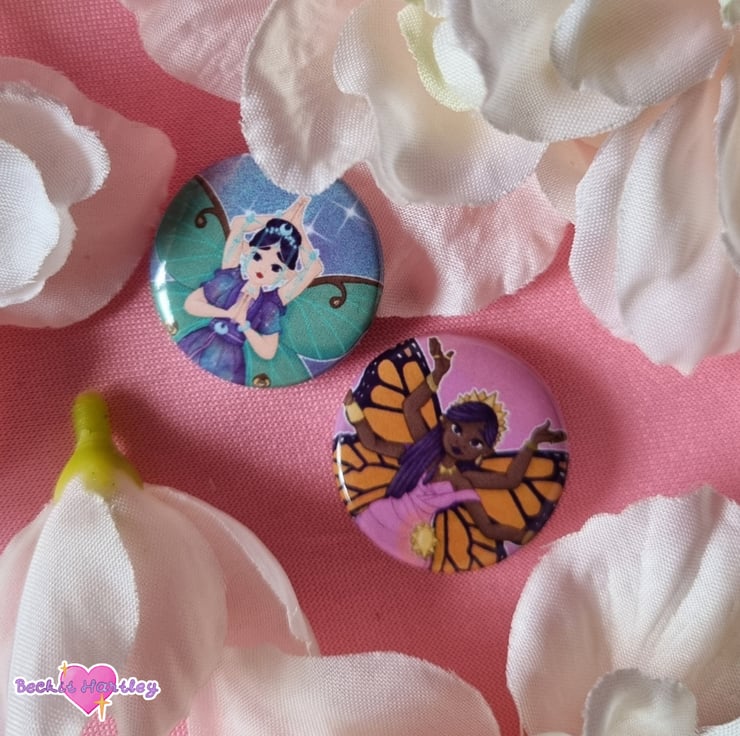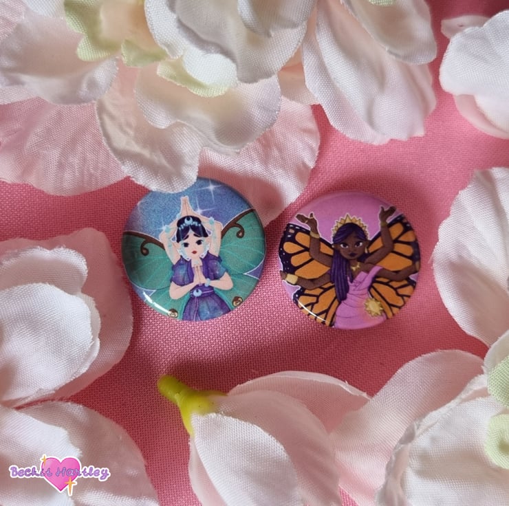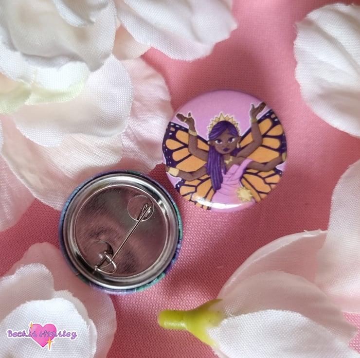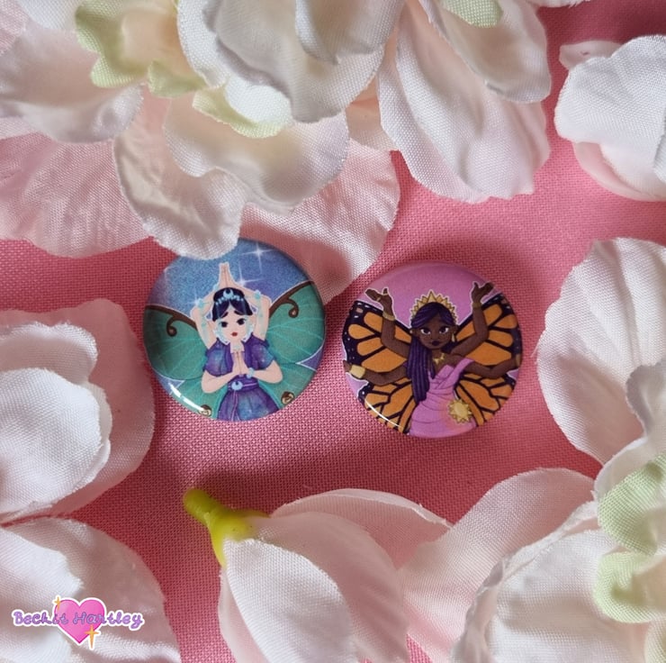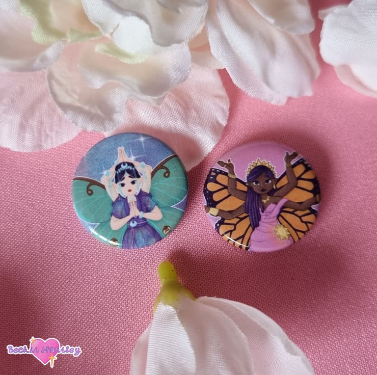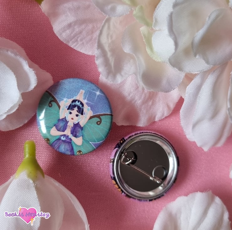 Featuring original sun and moon goddess illustrations, these button badges are approximately 2.5cm wide and a great way to brighten up your outfit!