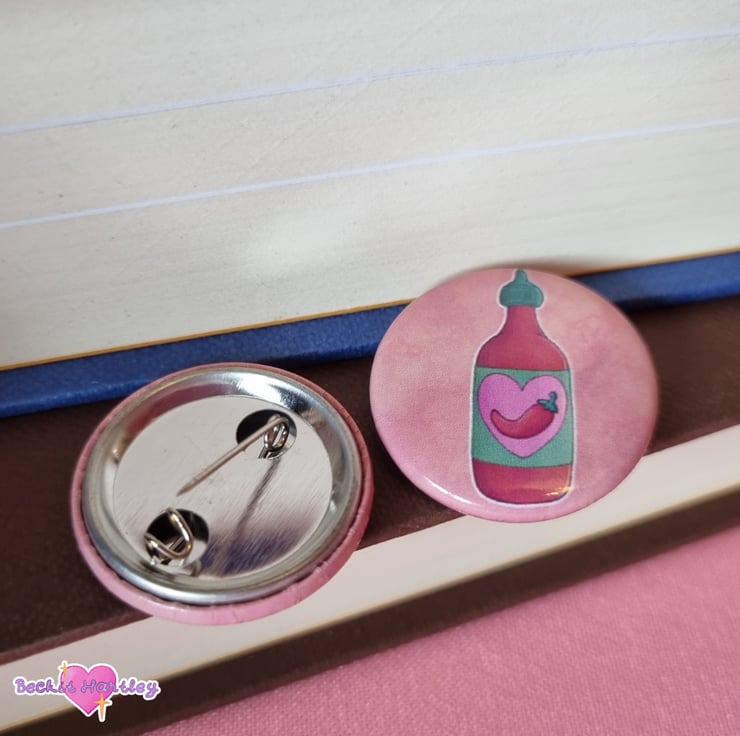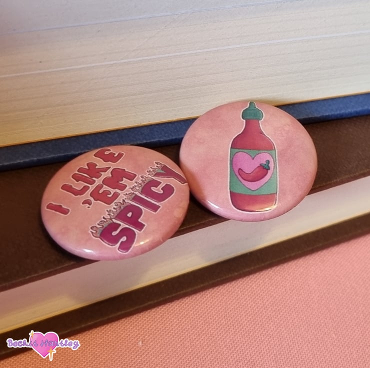 Featuring an original hot sauce bottle illustration and a witty phrase, these button badges are approximately 2.5cm wide and a great way to display your bookish pride!