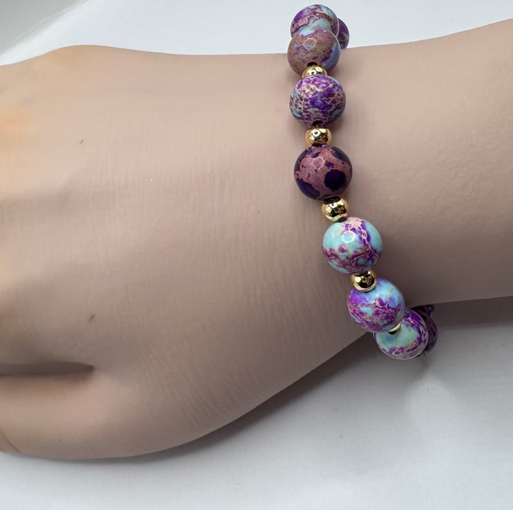 Elasticated Empire jasper Bracelet, approximately 6 inches with gold plated brass spacers.