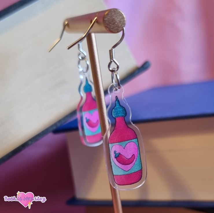 Hot Sauce Acrylic Earrings - Hook Earrings - Illustrated Accessories, Jewellery