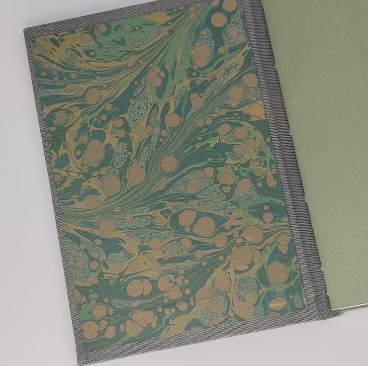 Hand-marbled insert papers from Jemma Lewis Marbling.