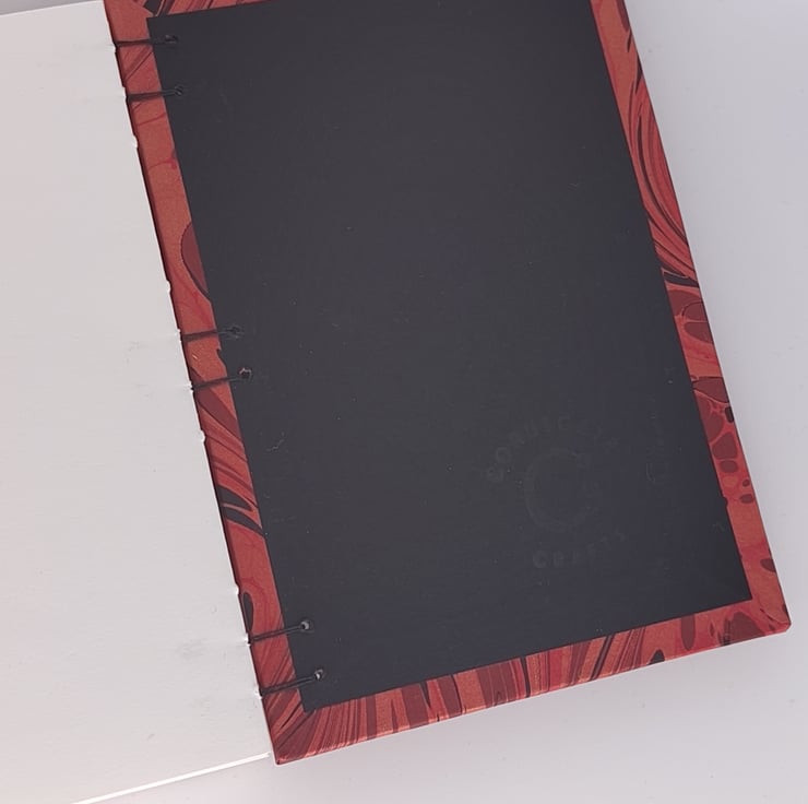 Handbound using hand-marbled paper from Jemma Lewis Marbling.