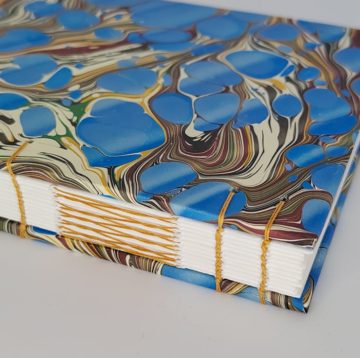 Handbound using hand-marbled paper from Jemma Lewis Marbling.