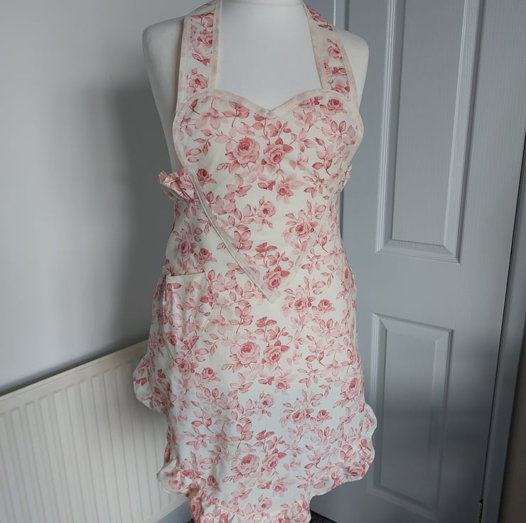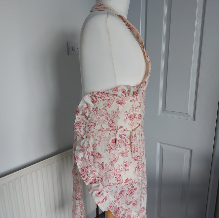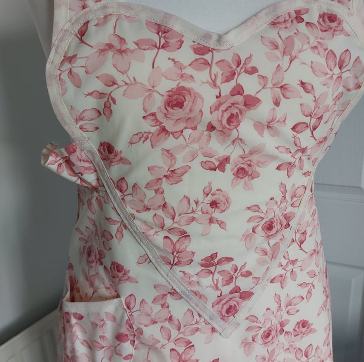 Handmade using a vintage rose floral fabric and a cream cotton bias trim