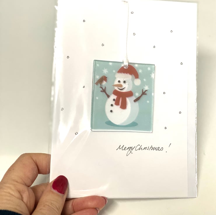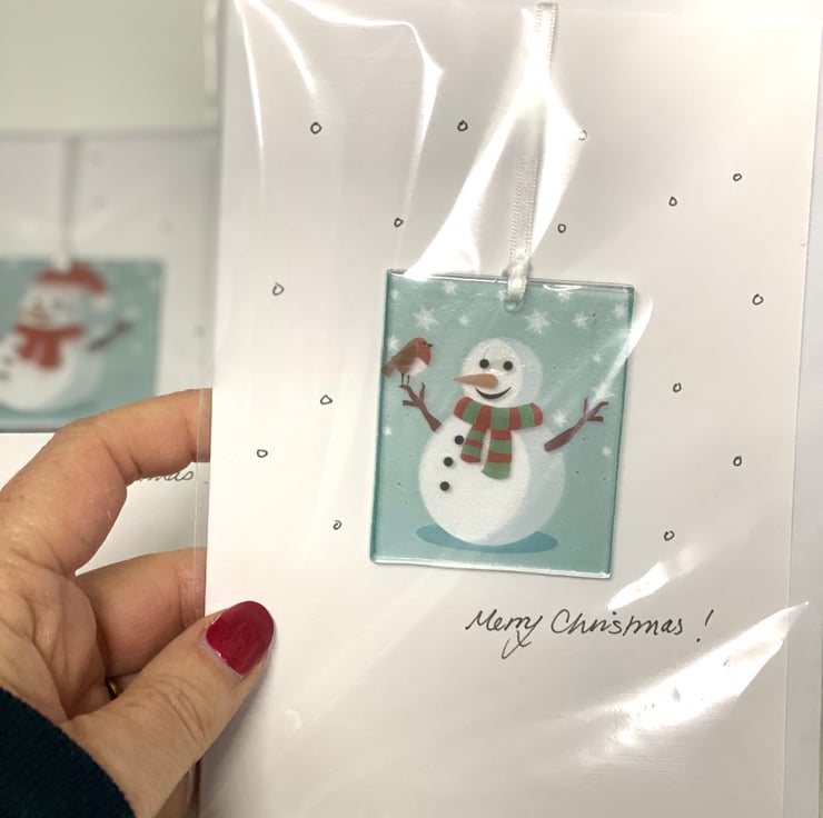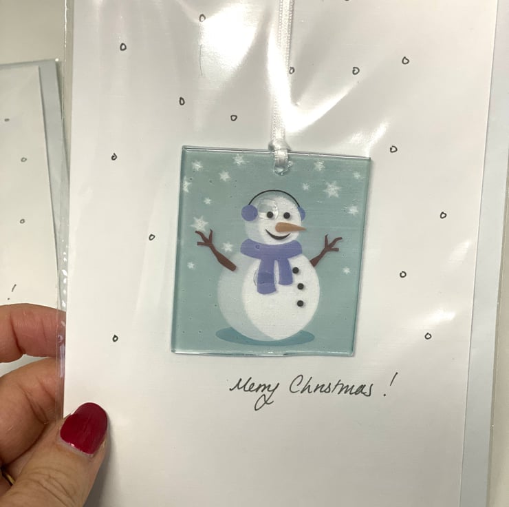 A lovely way to gift a card and a gift in one - and even better I can send direct to Dave you postage just leave me a message in comments. Once the Christmas card is no longer required simply detach from the hang and hang on the Christmas tree for years to come . The card is 5x7 inch and comes with an envelope in clear cellophane . A snowman will be picked at random from the above designs