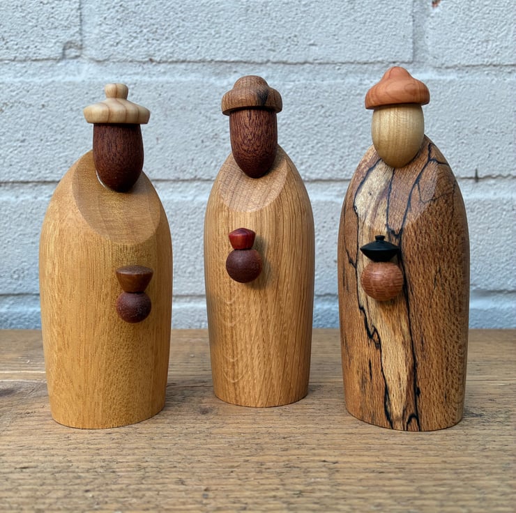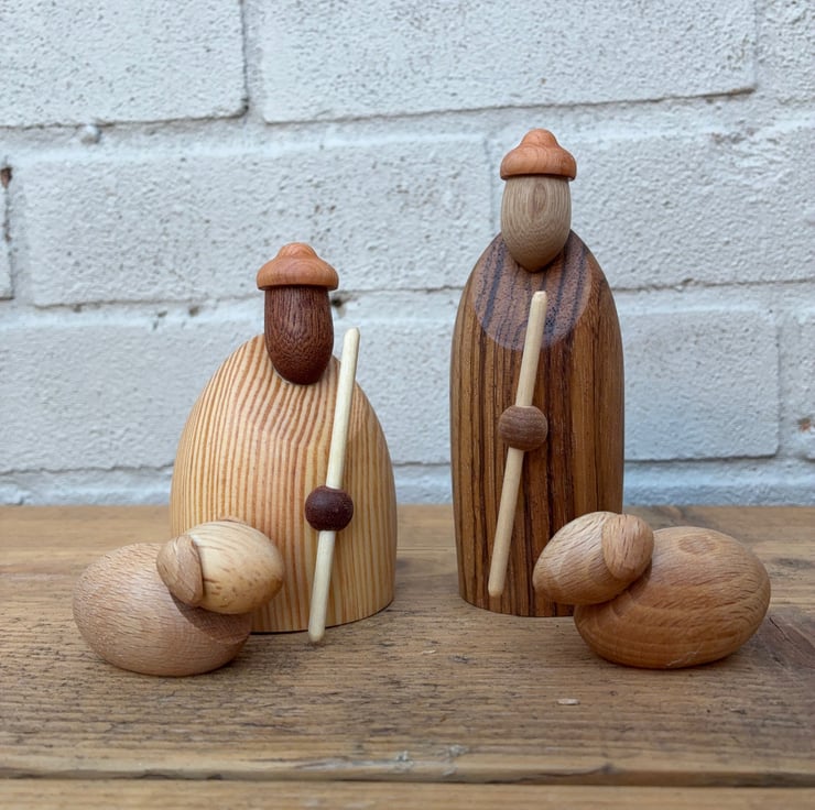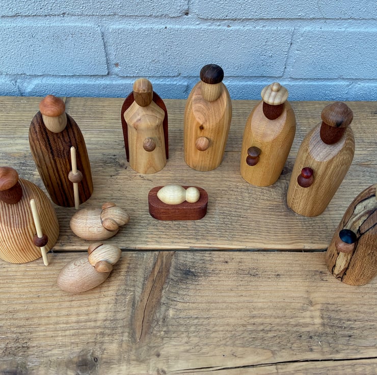 This is one of our nativity displays, it is all handmade of on our woodturning lathe from numerous different timbers. Each set that we make is unique, no two sets are the exactly the same.
