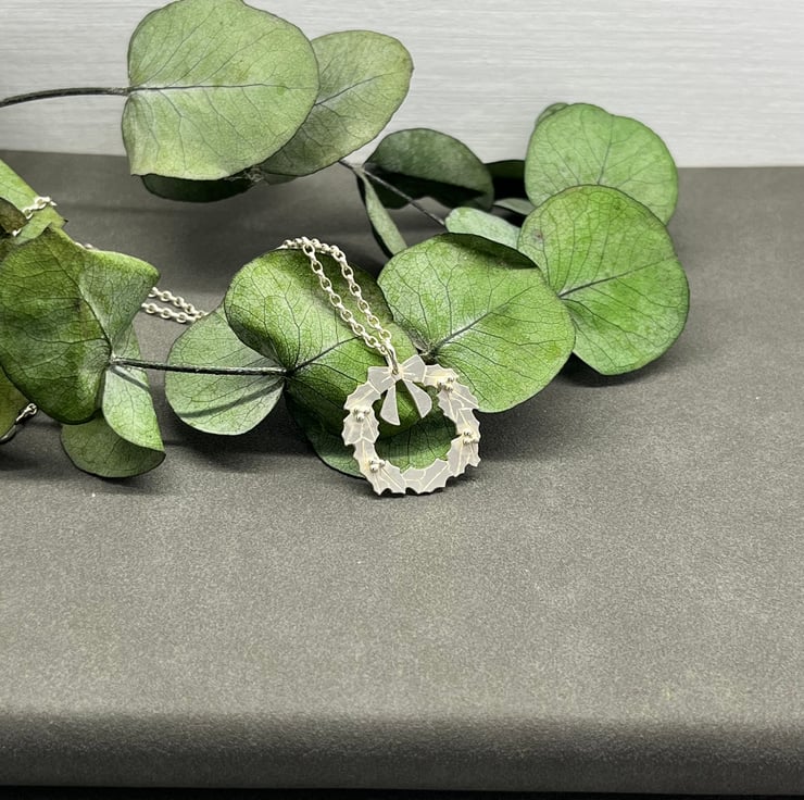 This design was drawn by hand and then cut out from sterling silver sheet. The details were engraved and little silver berries were securely soldered.